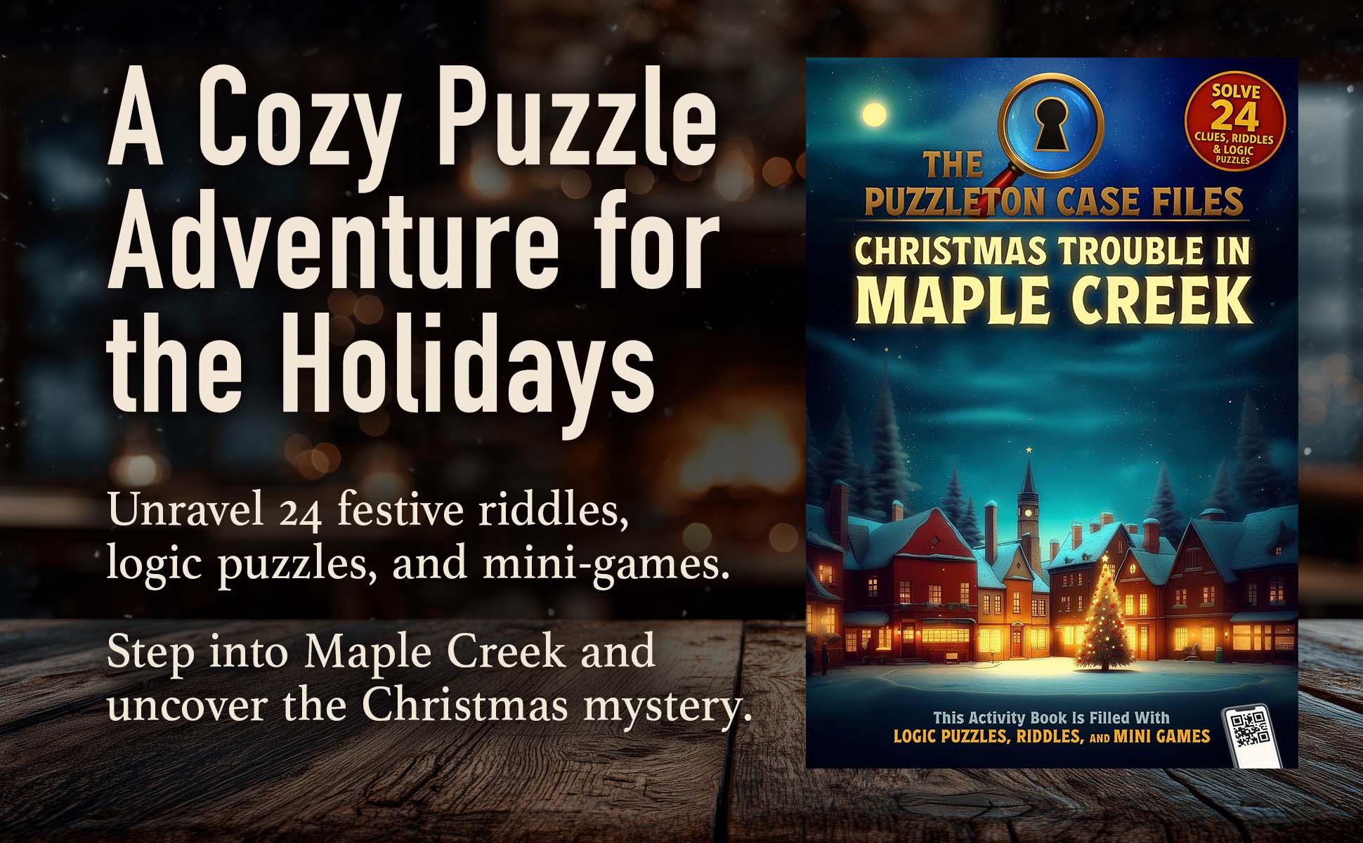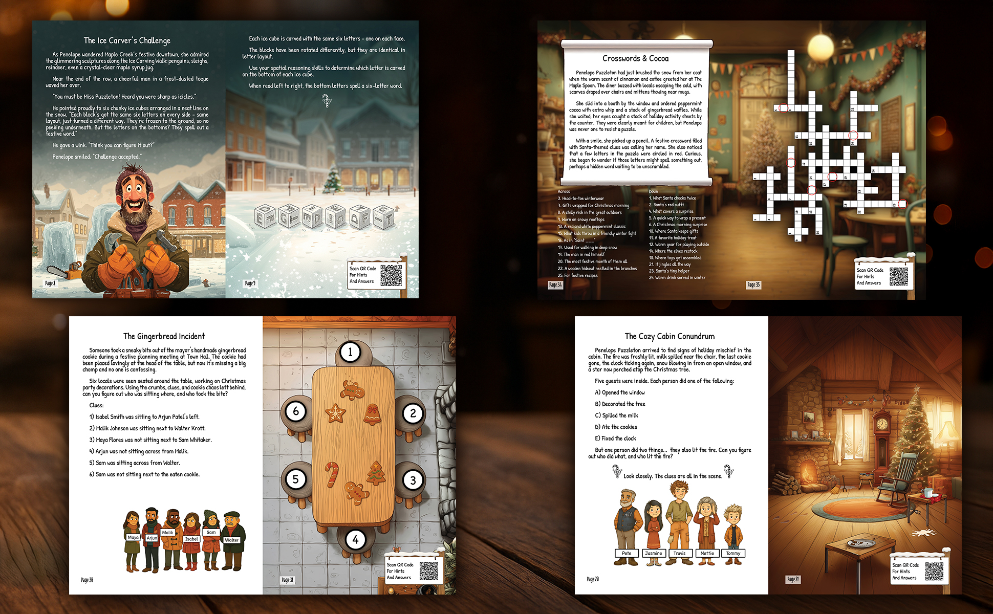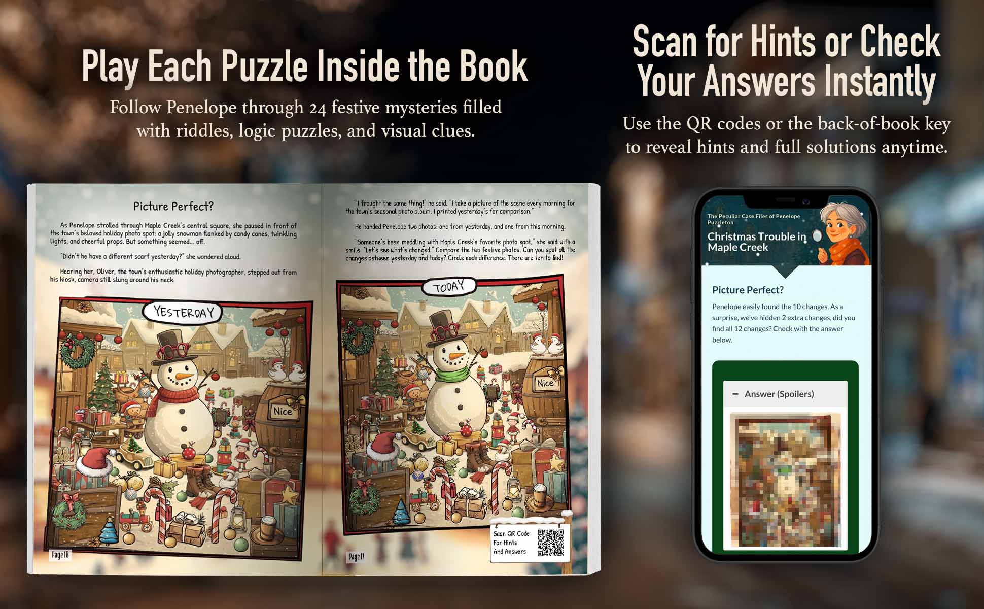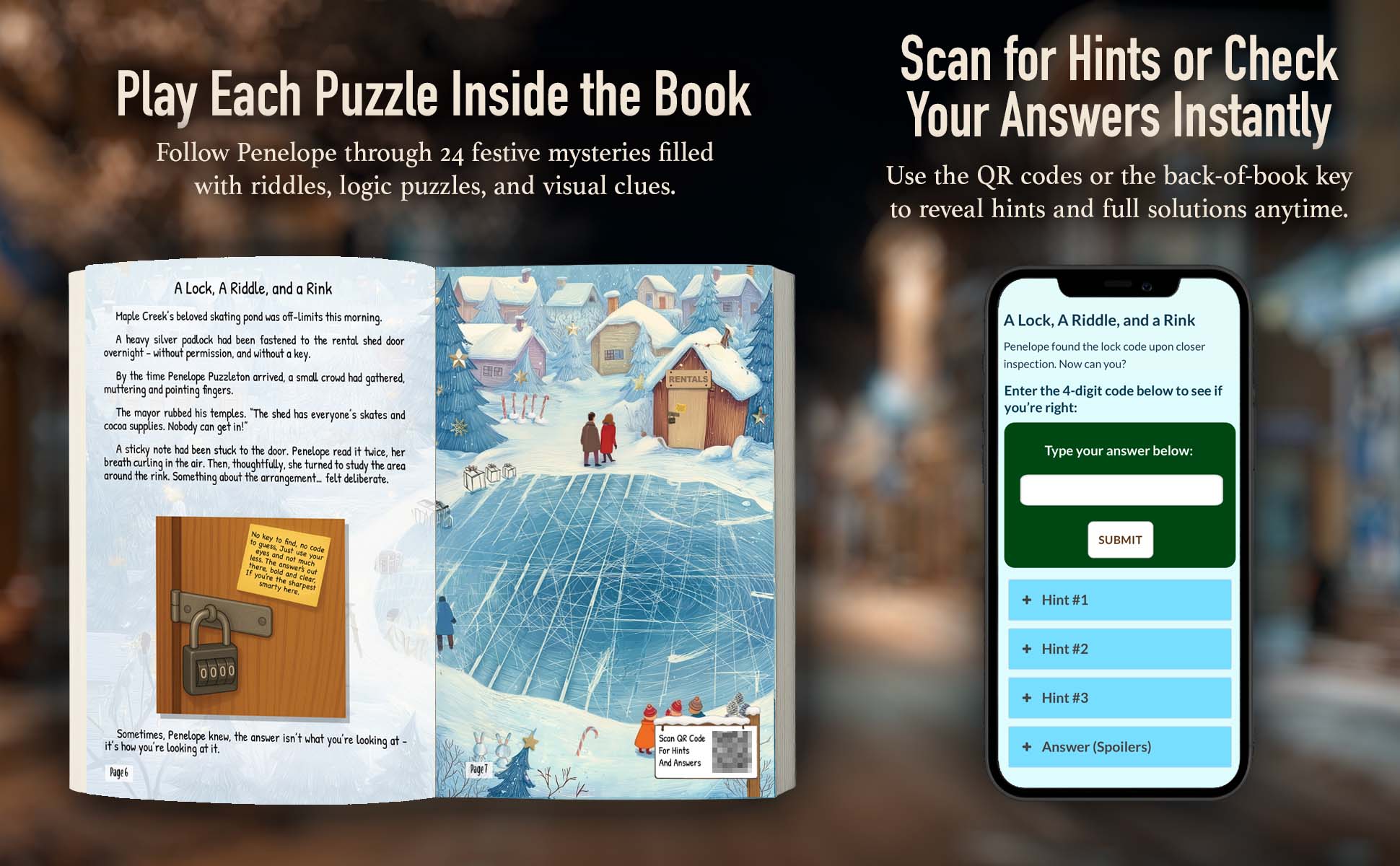 Maple Creek’s Christmas plans are falling apart – and Penelope Puzzleton is on the case. Solve puzzles, crack clues, and help her save the holiday!