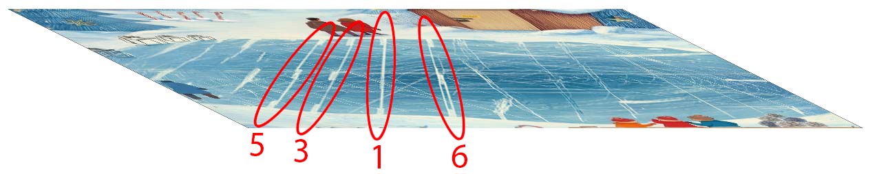 The four numbers appear in order somewhere within the rink scene. A sharp eye will spot them - if you’re truly looking. To see clearly, sometimes all you need is a fresh perspective. Try changing your angle. Picture yourself standing at the bottom-left corner of the ice rink, looking across toward the rental shed. It might help to lift the book to eye level and view the rink from that angle. When you look at the book from the right angle you can make out the numbers 5316 Hint #1