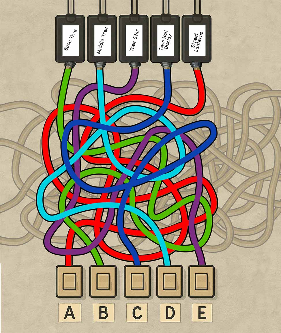 Penelope needs to flip the switches in the correct order to light up Maple Creekâs Christmas display, from the base of the tree all the way to the street lanterns.