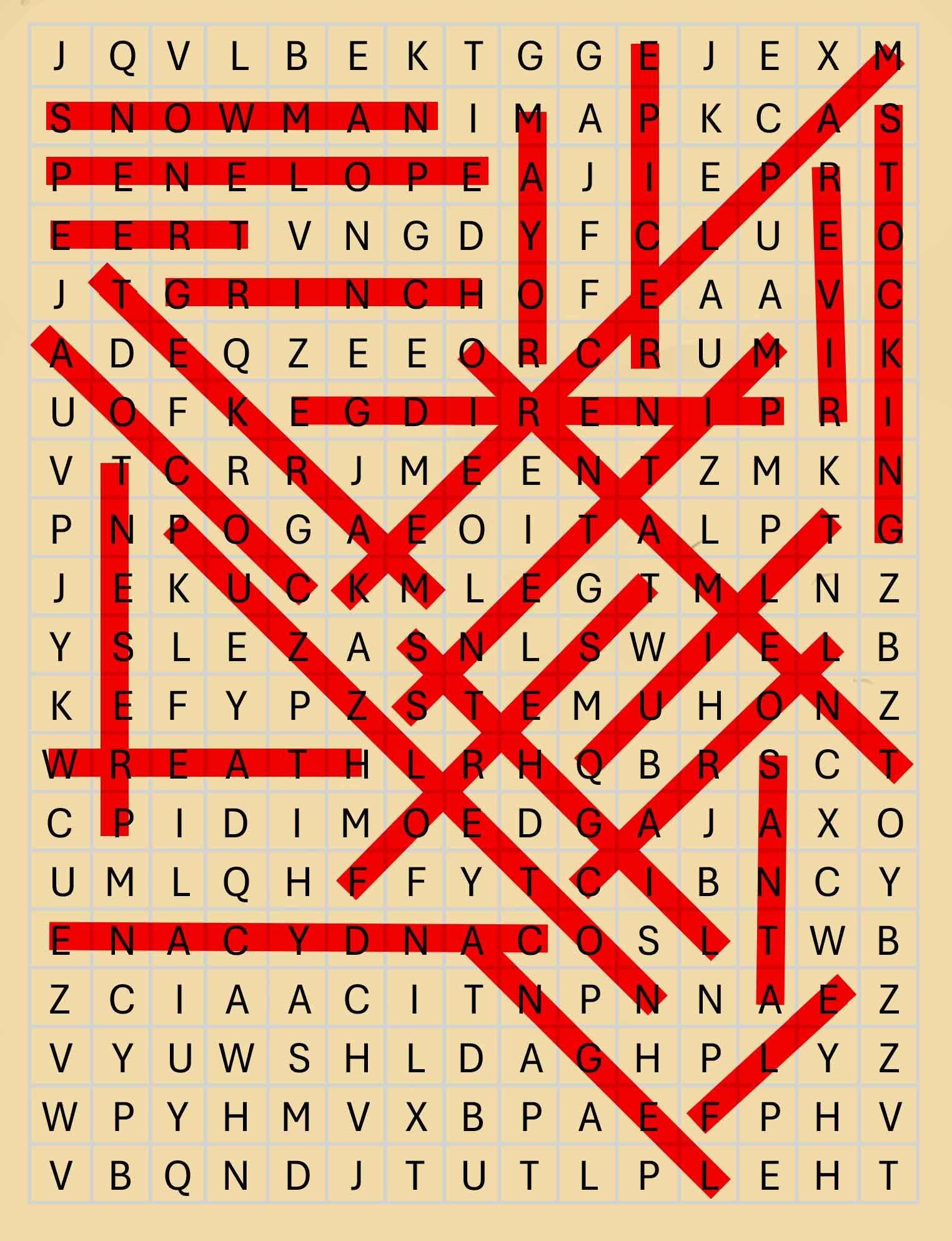 At the diner, Penelope was served pancakes, cocoa, and a puzzle! The owner’s word search featured 25 Maple Creek and Christmas words hidden in every direction.