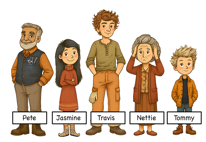 If you look closer at what Pete has in his pockets it might give you the answer you need. Pete has tools in his pockets, and near the Clock are some tools on a stool. He's the most likely person to have fixed the Clock. Jasmine is short and adorable, and for some reason in her socks. If we look carefully the actually look a little wet? Upon further inspection we can see that there are wet foot prints leading away from the open window. Some incoming snow must have melted, and the foot prints sort of look like the shape of Jasmine's wet socks. She opened the window. Nettie seems out of sorts. She even seems to be missing her glasses, as a hint. Looking around the room we a rocking chair, which Nettie might like, and we see glasses on the floor next to the table with the spilled milk. Out of these 5 characters, Nettie seems most likely to have spilled the milk. It's sort of hard to see, but if you inspect Tommy's shirt and shoes carefully, you might see clues. We can tell he's too short the have done the Christmas tree. Looking closely, and removing most of the other options, Tommy seems most likely to have eaten the cookies, including the crumbs on his shirt and shoes. Travis is tall and has a suspicious glove in his pocket. The glove in his pocket matches the glove by the fireplace poker, AND he's the tallest of the group. So Travis is most likely the one who lite the fire, and completed the tall Christmas tree decorating. Hint 1 - Pete